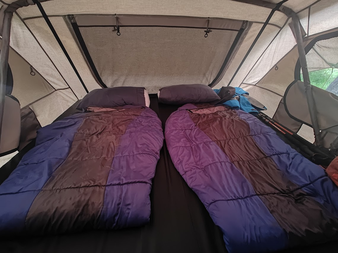 A bus took us to the park entrance, followed by a shuttle to Camp Central. We spent two nights here in elevated tents with breakfast and dinner provided, plus lunch bags for the trail. The showers had hot water—not luxurious, but adequate. Dinner quality was excellent the first night, though breakfast portions were tight and everything was shared family-style. Big eaters should bring extra snacks or buy from the refugio shop.