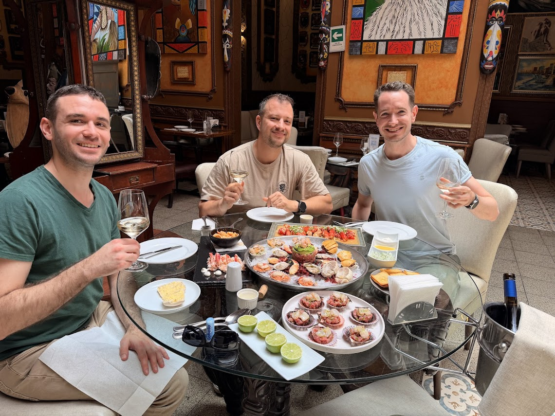 After months in central Europe, we were craving seafood. Fortunately, our hotel was steps away from Ocean Pacific’s Buque Insignia, where we feasted on abalone, oysters, mussels, crab, and tuna surrounded by maritime décor. It became one of our most memorable meals of the trip—opulent, fresh, and exactly what we needed.